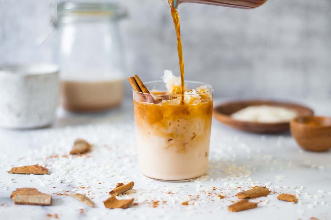 در صورت دلخواه در این مرحله شیر و یا خامه پرچرب را نیز به شربت اضافه کنید و یا در صورتی که به استفاده از لبنیات داخل هورچاتا لاته علاقهای ندارید؛ انواع آبمیوههای طبیعی نیز گزینه مناسبی محسوب میشوند.